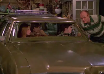 Eric, Donna and Kelso leave town in the Vista Cruiser.